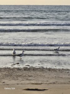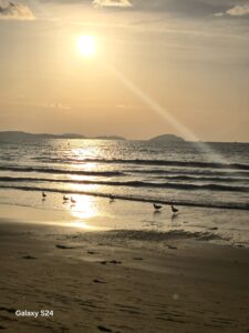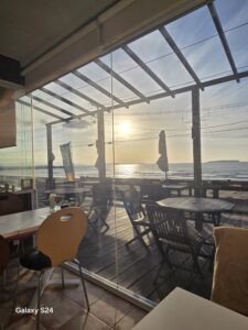スイーツを食べ終えお店を出て、夕日を見ながら海岸沿いを歩き、駐車場まで戻り